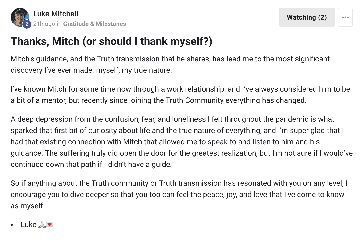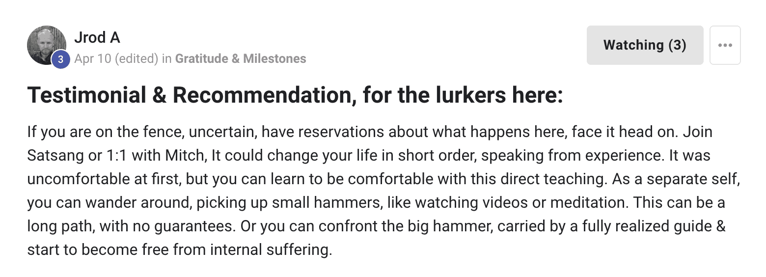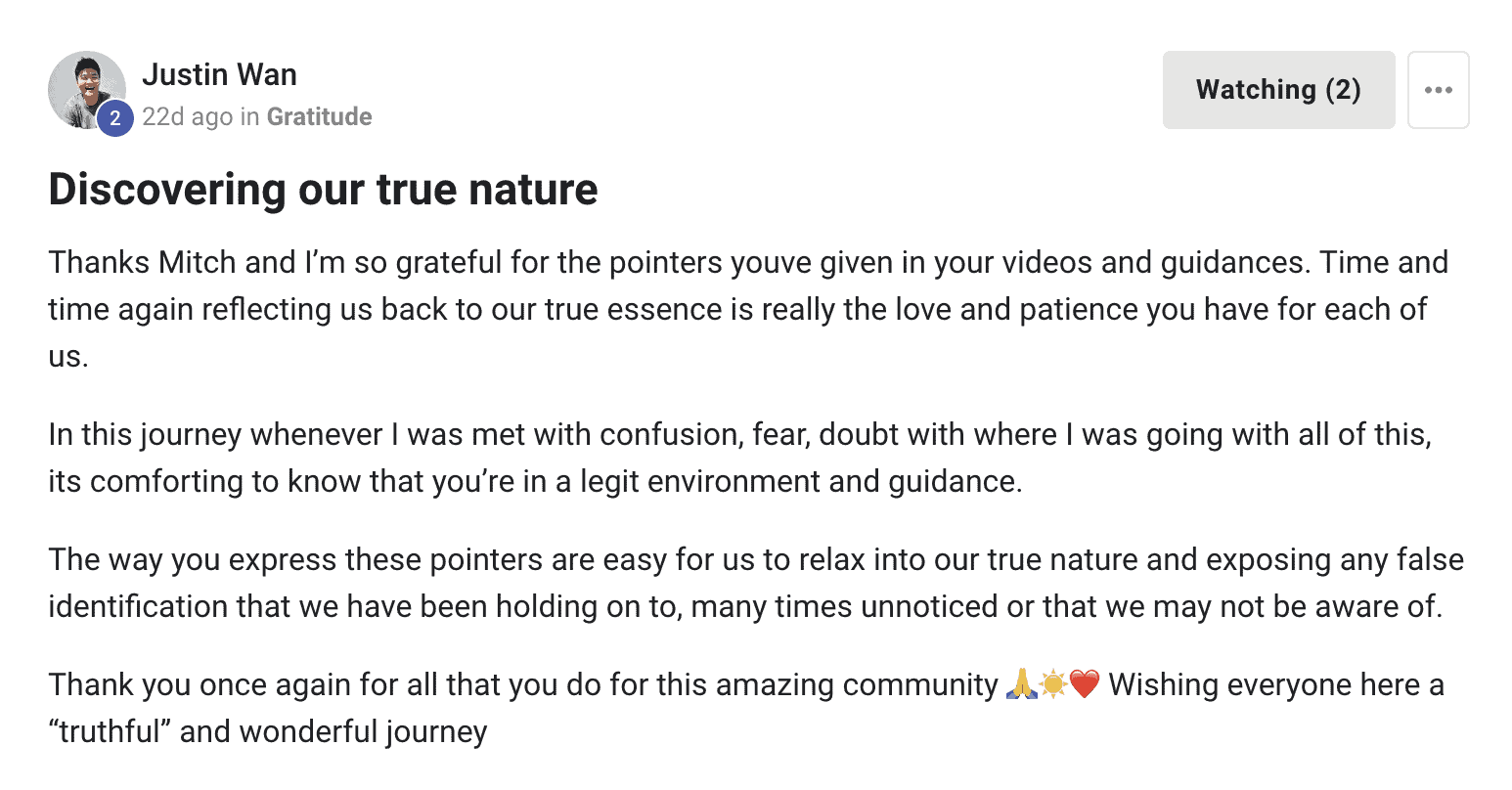 As the founder of Truth Community, Mitch transforms lives through guidance, retreats, courses, and books. Enlightenment is for everyone, and self-realization is the greatest gift to yourself and the world. Join Mitch on the transformational journey of living Truth.